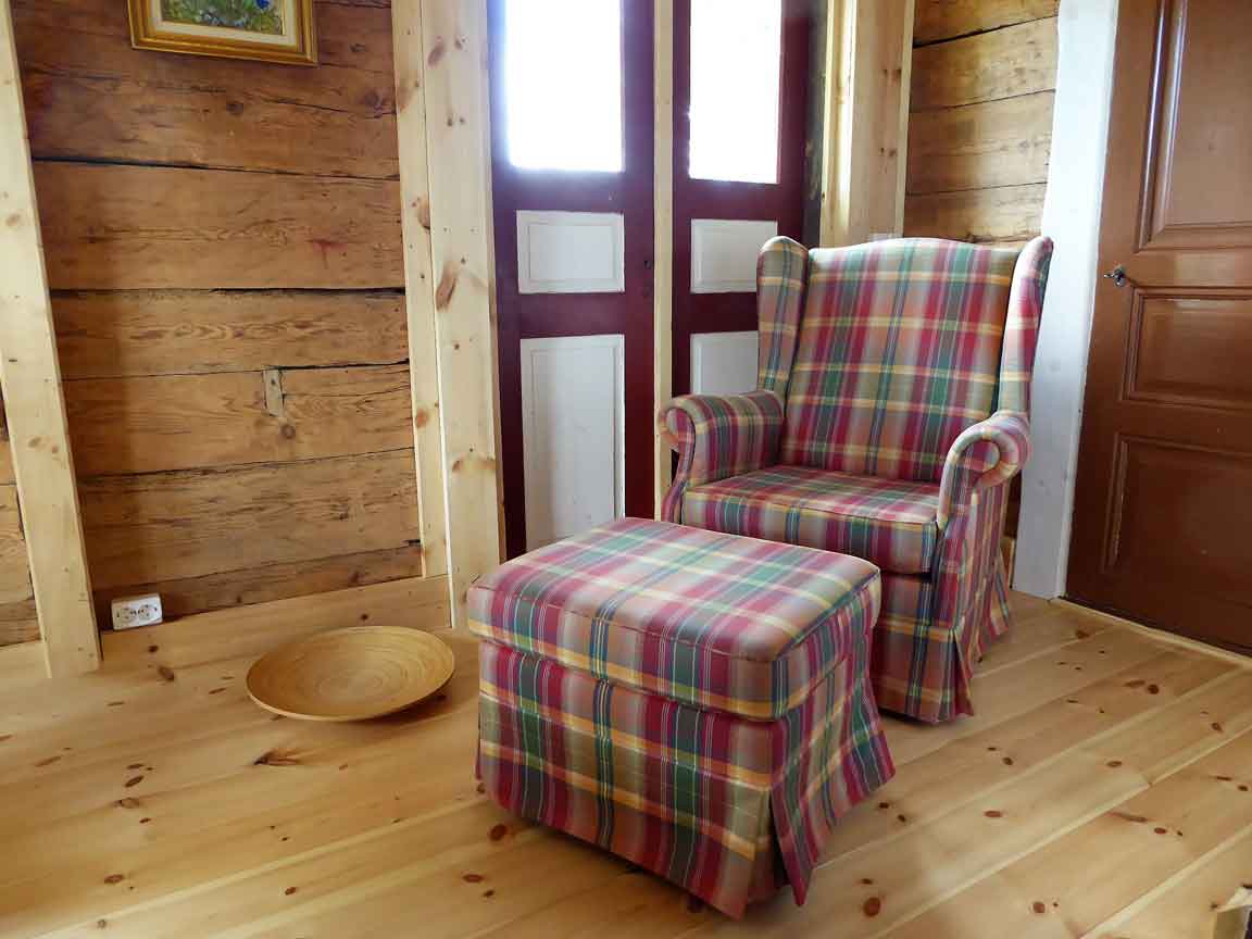 Bottenvåningen : Välutrustat kök; 4-plattor kokplatta, mikrovågsugn, diskmaskin, ugn, kyl och frys. Stort vardagsrum med 2 soffor, typiska svenska möbler och en flatscreen-TV (med tyska kanaler). Ett matsal med matbord, en bekväm stol och en spis Varmt och kallt vatten från egen brunn. Ett kaklat badrum med handfat, dusch och toalett