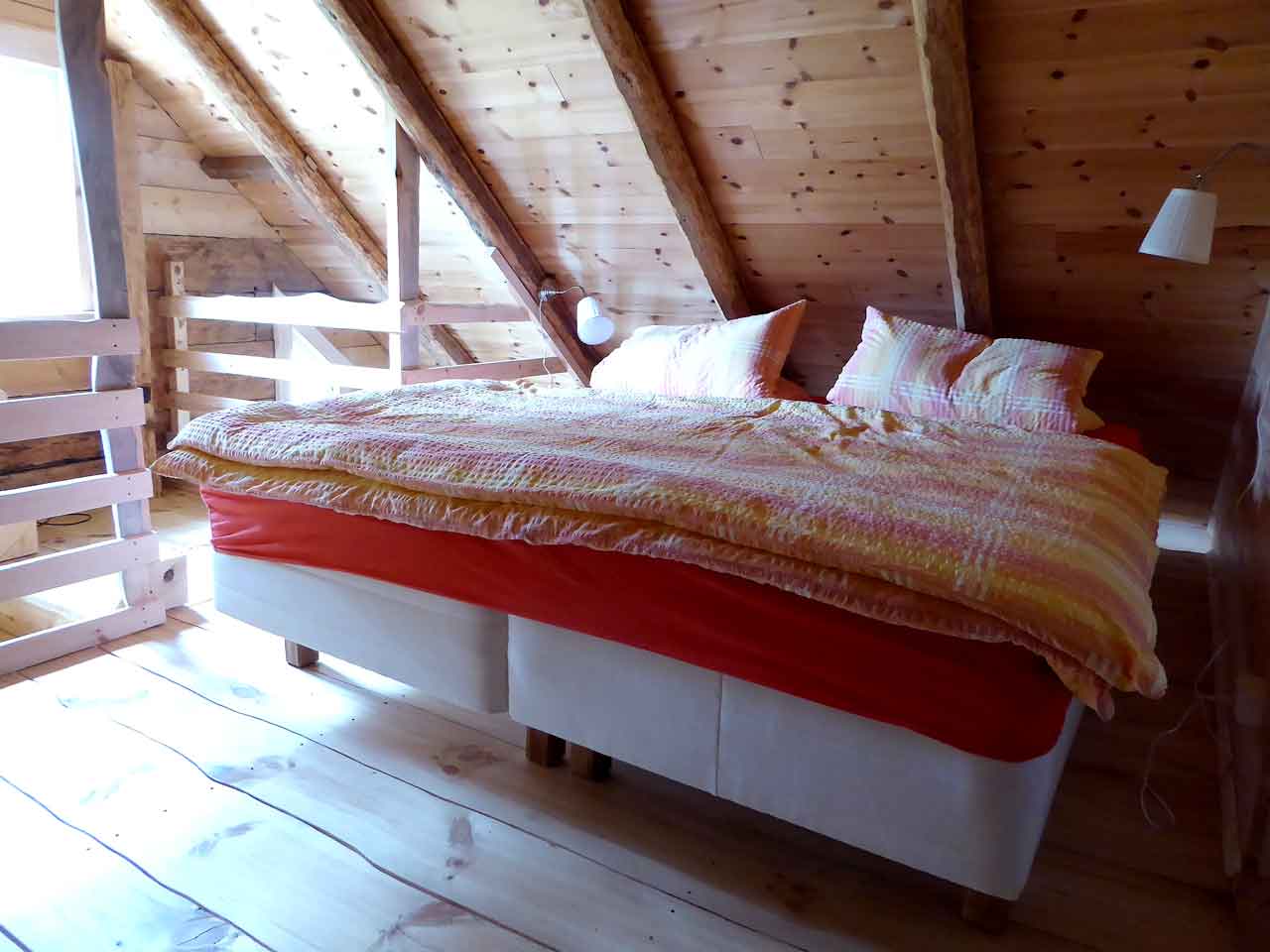 Andra våningen: Sovrum 1 på en sovloft med en dubbelsäng. Sovrum 1 kan nås genom matsalen Sovrum 2 på en sovloft med en dubbelsäng. Sovrum 2 kan nås genom vardagsrummet